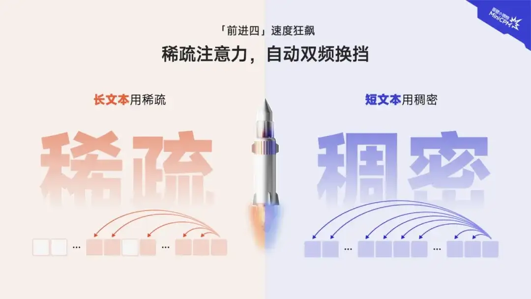 稀疏注意力机制,处理高难度的长文本、深思考;稠密注意力机制,一般短文本轻松拿捏;实现了长文本、短文本的双重丝滑。